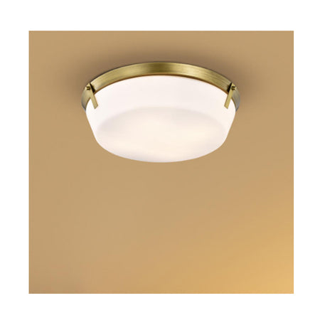 Satco 60-7751, Rowen 4-Light Flush Mount Ceiling Light Fixture, 120V, 60W, Natural Brass Finish, Etched White Glass