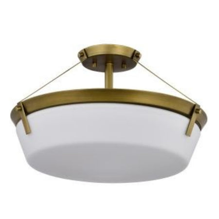 Satco 60-7752, Rowen 4-Light Semi Flush Mount Light Fixture, 120V, 60W, Natural Brass Finish, Etched White Glass