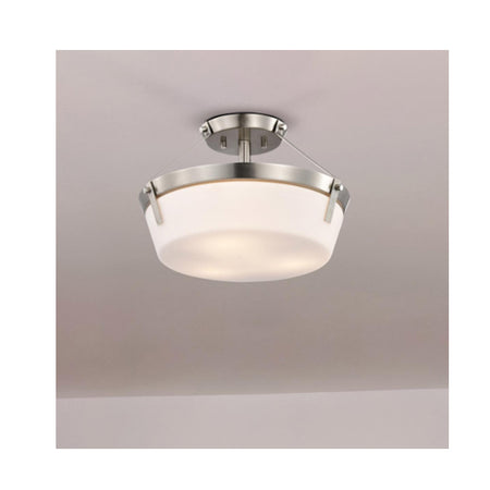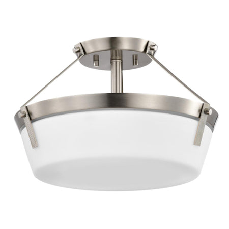 Satco 60-7763, Rowen 3-Light Semi Flush Mount Light Fixture, 120V, 60W, Brushed Nickel Finish, Etched White Glass
