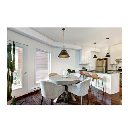 Satco 60-7766, Adina 1-Light Medium Pendant Ceiling Light Fixture, 120V, 60W, Matte Black and Natural Brass Finish