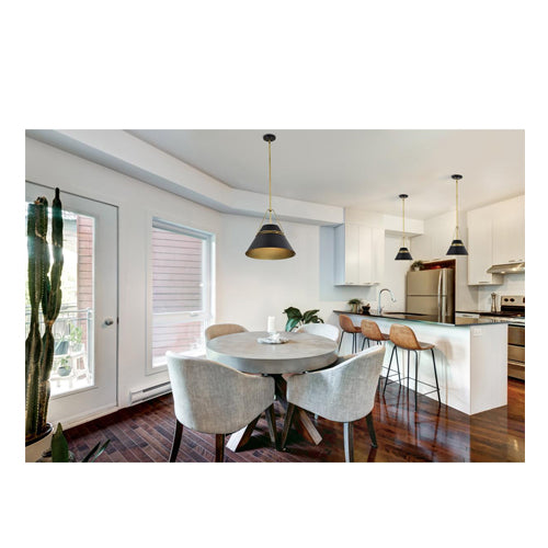 Satco 60-7767, Adina 1-Light Small Pendant Ceiling Light Fixture, 120V, 60W, Matte Black and Natural Brass Finish