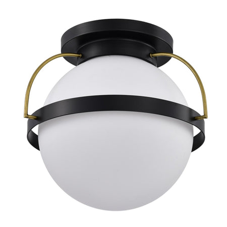 Satco 60-7772, Lakeshore, 1-Light Large Flush Mount Ceiling Light Fixture, 120V, 60W, Matte Black and Natural Brass Finish, White Opal Glass