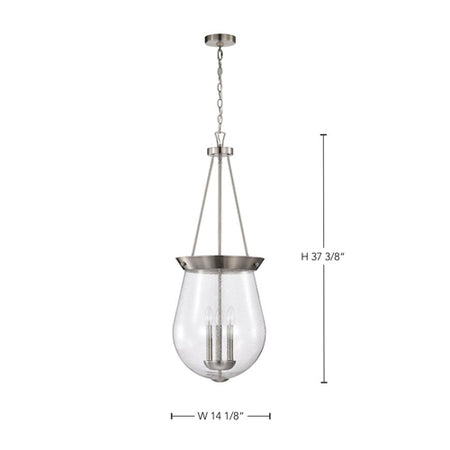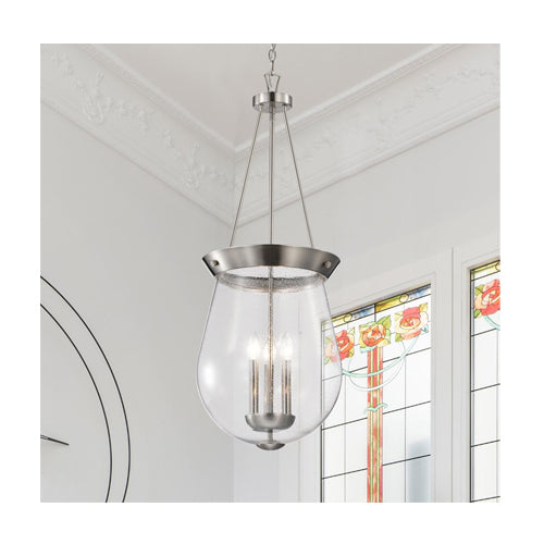 Satco 60-7805, Boliver, 3-Light 14" Pendant Ceiling Light Fixture, 120V, 60W, Candelabra Base, Brushed Nickel Finish, Clear Seeded Glass