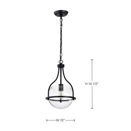 Satco 60-7817, Amado, 1-Light 10" Pendant Ceiling Light Fixture, 120V, 60W, Medium Base, Matte Black Finish, Clear Glass