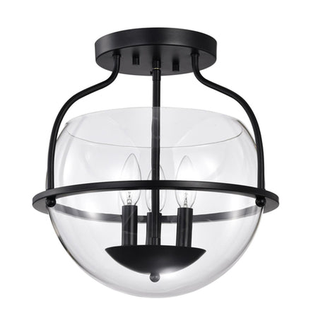 Satco 60-7823, Amado, 3-Light Semi Flush Mount Light Fixture, 120V, 60W, Candelabra Base, Matte Black Finish, Clear Glass