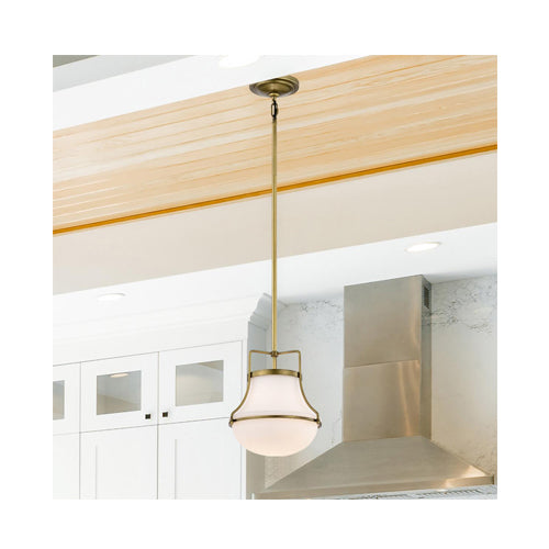 Satco 60-7862, Valdora, 1-Light 10" Pendant Ceiling Light Fixture, 120V, 60W, Medium Base, Natural Brass Finish, White Opal Glass