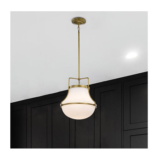Satco 60-7863, Valdora, 1-Light 14" Pendant Ceiling Light Fixture, 120V, 60W, Medium Base, Natural Brass Finish, White Opal Glass