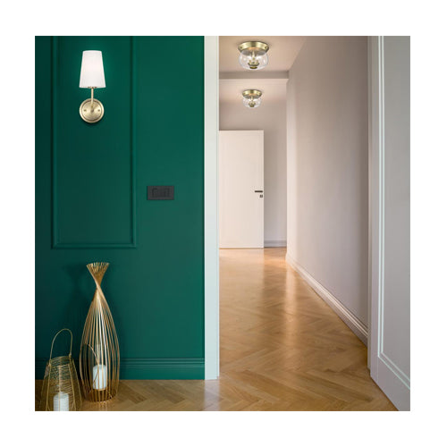 Satco 60-7883, Cordello, 1-Light Wall Sconce, 120V, 60W, Candelabra Base, Vintage Brass Finish, Etched White Opal Glass