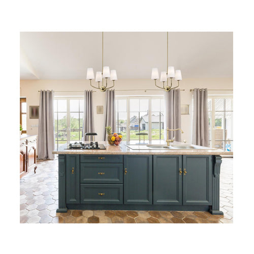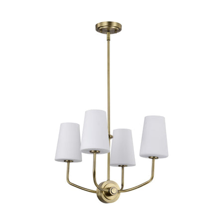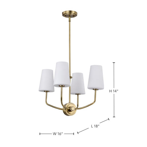 Satco 60-7884, Cordello, 4-Light Chandelier, 120V, 60W, Candelabra Base, Vintage Brass Finish, Etched White Opal Glass