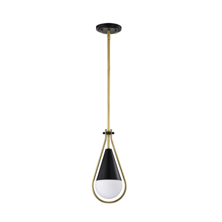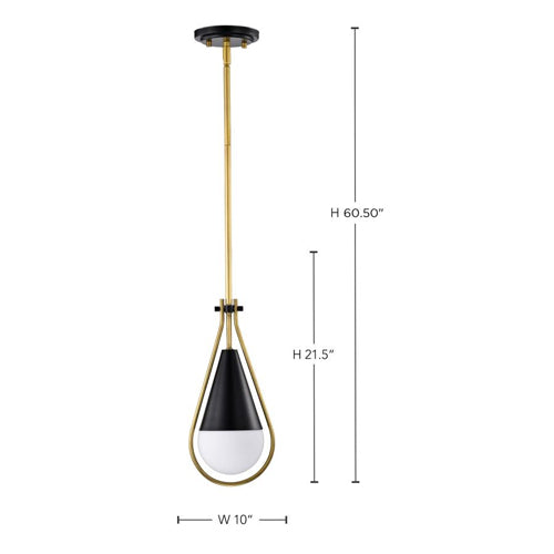 Satco 60-7903, Admiral, 1-Light 10" Pendant Ceiling Light Fixture, 120V, 60W, Medium Base, Matte Black and Natural Brass Finish, White Opal Glass