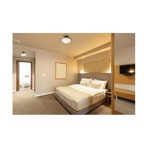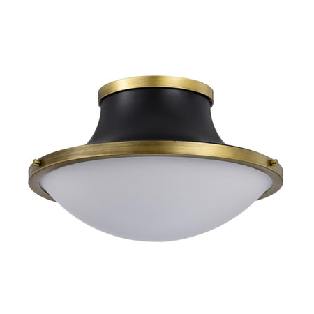 Satco 60-7906, Lafayette, 3-Light 18" Flush Mount Ceiling Light Fixture, 120V, 60W, Medium Base, Matte Black Finish with Natural Brass Accents and White Opal Glass