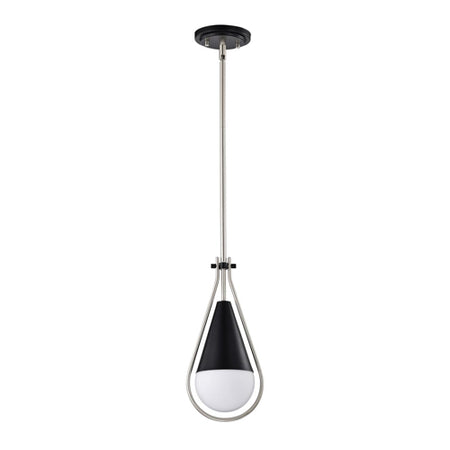 Satco 60-7912, Admiral, 1-Light 6" Pendant Ceiling Light Fixture, 120V, 60W, Medium Base, Matte Black and Brushed Nickel Finish, White Opal Glass