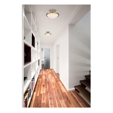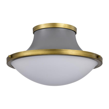 Satco 60-7916, Lafayette, 3-Light 18" Flush Mount Ceiling Light Fixture, 120V, 60W, Medium Base, Gray Finish with Natural Brass Accents and White Opal Glass