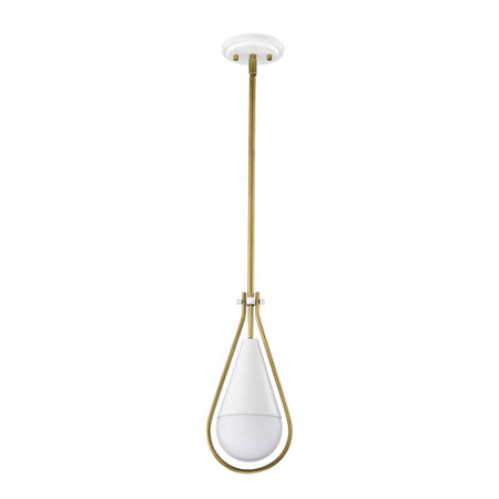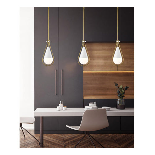 Satco 60-7922, Admiral, 1-Light 6" Pendant Ceiling Light Fixture, 120V, 60W, Medium Base, Matte White and Natural Brass Finish, White Opal Glass