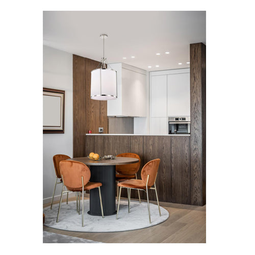 Satco 60-7972, Easton, 3-Light Pendant Fixture, 120V, 100W, Medium Base, Polished Nickel Finish, White Linen Shade
