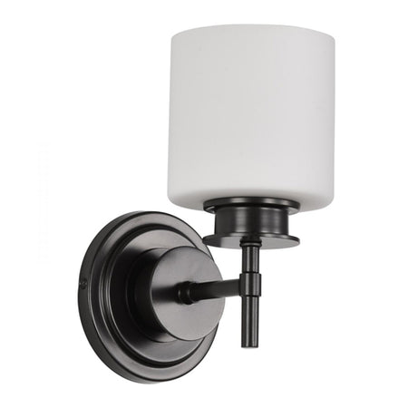 Satco 60-8031, Warren, 1-Light Vanity Fixture, 120V, 60W, Medium Base, Gun Metal with Satin White Glass