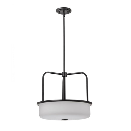 Satco 60-8037, Warren, 17'' Pendant Fixture, 120V, 60W, Medium Base, Gun Metal with Satin White Glass