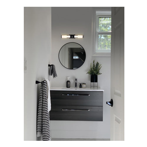 Satco 60-8052, Roselle, 2-Light Vanity Fixture, 120V, 60W, Medium Base, Matte Black with White Glass
