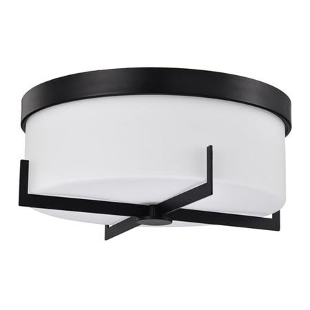 Satco 60-8054, Roselle, 15" Flush Mount Ceiling Light Fixture, 120V, 60W, Medium Base, Matte Black with White Glass
