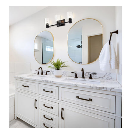 Satco 60-8063, Clarksville, 3-Light Vanity Fixture, 120V, 60W, Medium Base, Matte Black with Clear Glass