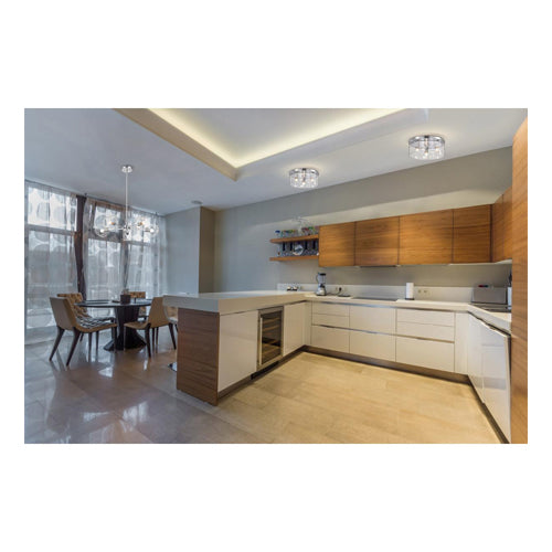 Satco 60-8074, Marlowe, 15'' Flush Mount Ceiling Light Fixture, 120V, 60W, Candelabra Base, Polished Nickel with Clear Glass