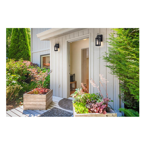 Satco 60-8101, Wilton, 1-Light Small Outdoor Wall Lantern, 120V, 60W, Medium Base, Matte Black with Clear Seeded Glass