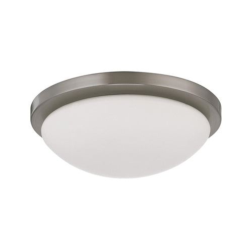 Satco 62-1042, Button, 11'' LED Flush Fixture with Frosted Glass, 120V, 18W, 3000K Warm White, 1440 Lumens, Dimmable, Brushed Nickel Finish