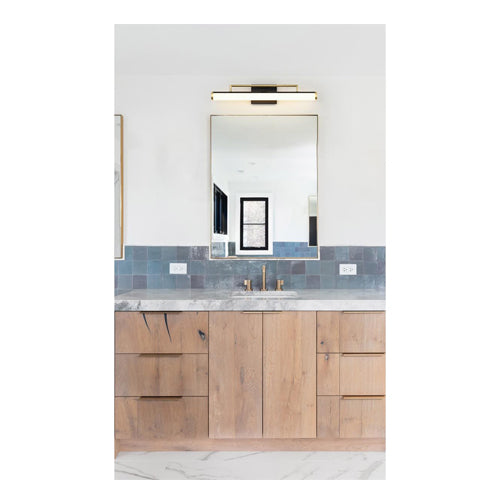 Satco 62-1538, Solano, LED Medium Vanity, 120V, 26W, 3000K Soft White, 2080 Lumens, Black and Brushed Brass Finish, White Acrylic Lens
