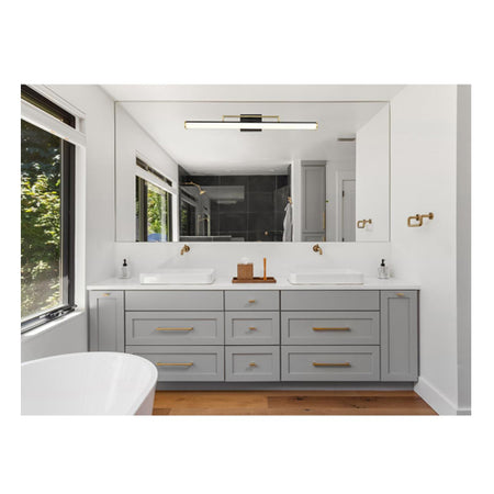 Satco 62-1539, Solano, LED Large Vanity, 120V, 39W, 3000K Soft White, 3120 Lumens, Black and Brushed Brass Finish, White Acrylic Lens