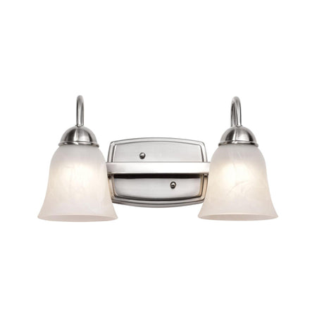 Satco 62-1568, 15W LED 2 Light Vanity Fixture, 120V, 3000K Warm White, 1300 Lumens, Dimmable, Brushed Nickel with Alabaster Glass