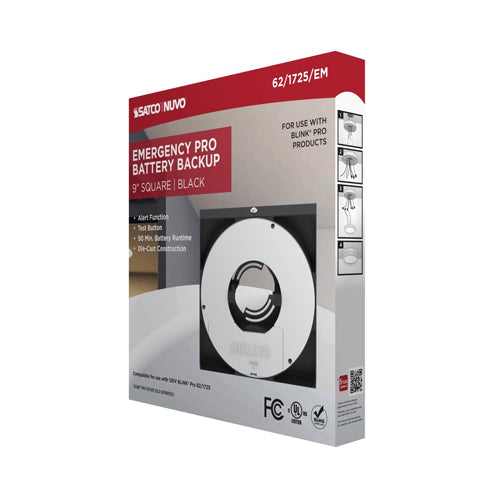 Satco 62-1725-EM, Blink Pro, Emergency Battery Backup, 9'' Square, 120V, Black Finish