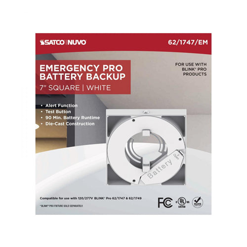 Satco 62-1747-EM, Blink Pro, Emergency Battery Backup, 7'' Square, 120/277V, White Finish