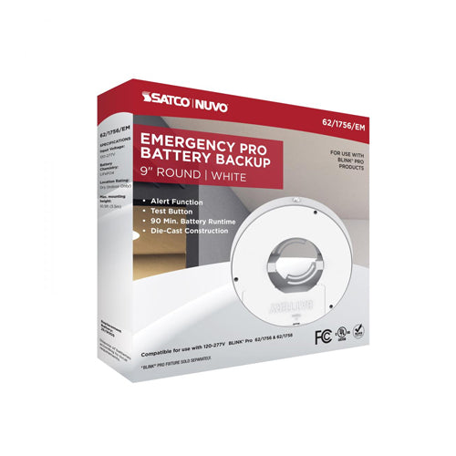 Satco 62-1756-EM, Blink Pro, Emergency Battery Backup, 9'' Round, 120/277V, White Finish