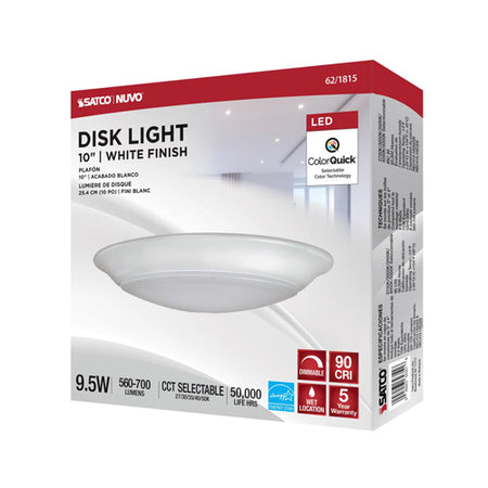 Satco 62-1815, 10" LED Disk Light, 120V, 9.5W, CCT Selectable 2700/3000/3500/4000/5000K, 560-700 Lumens, White Finish