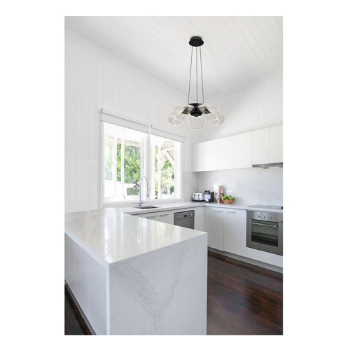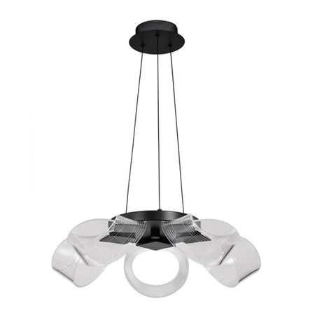 Satco 62-2036, Barnett, 21" LED 5 Light Chandelier, 120V, 24W, 3000K Soft White, 1920 Lumens, Matte Black, Silk Screened Acrylic Lens