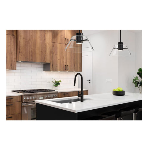Satco 62-2061, Edmond, 14" LED Pendant, 120V, 12W, 3000K Soft White, 1272 Lumens, Matte Black with Clear Glass