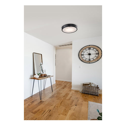 Satco 62-2101, Kendall, 14" LED Round Flush Mount Fixture, 120V, 25W, 3000K/4000K/5000K, 2100-2200 Lumens, Matte Black with Alabaster Glass