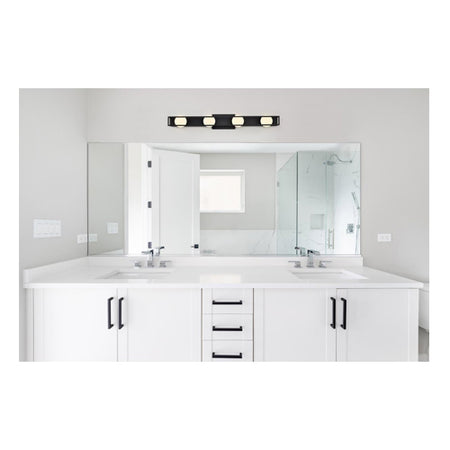 Satco 62-2244, Jenkins, 32'' 4 Light LED Vanity, 120V, 20W, 1920 Lumens, 3000K Soft White, Matte Black with Frosted Glass