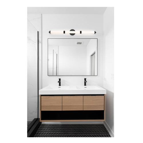 Satco 62-679, Kagen, LED Large Vanity, 120V, 39W, 3000K Warm White, 3120 Lumens, Matte Black Finish, White Acrylic Lens