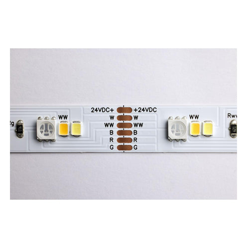 Satco 64-120, Dimension Plus, 16' LED Tape Light Strip, RGB plus Tunable White, 24V, 12W, 2700K, 1120 Lumens, IP20, Plug Connection,Starfish IOT Capable, IR Remote Included
