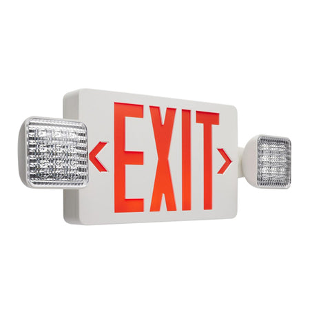 Satco 67-121, Combination Red Exit Sign/Emergency Light, 90min Ni-Cad backup, 120/277V, 2.8W, 150 Lumens, 5700K, Dual Head, Single/Dual Face, Universal Mounting