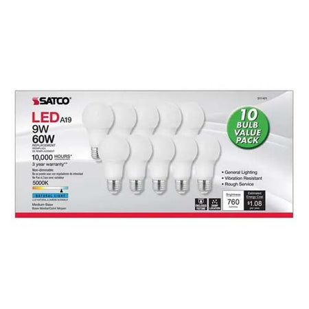 Satco S11401, A19 LED, 9W, 120V, 5000K Natural Light, 760 Lumens, Medium E26 Base, Frost Finish