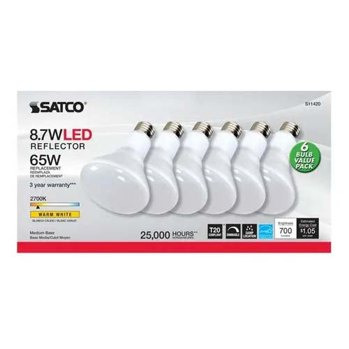 Satco S11420, BR30 LED, 8.7W, 120V, 2700K Warm White, 700 Lumens, Medium E26 Base, Frost Finish