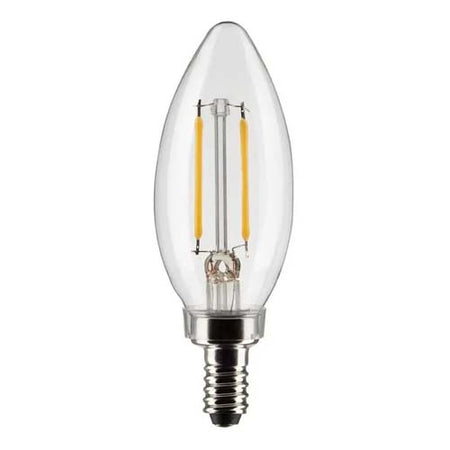 Satco S21262, B11 LED Filament, 3W, 120V, 2700K Warm White, 200 Lumens, Candelabra E12 Base, Clear Finish