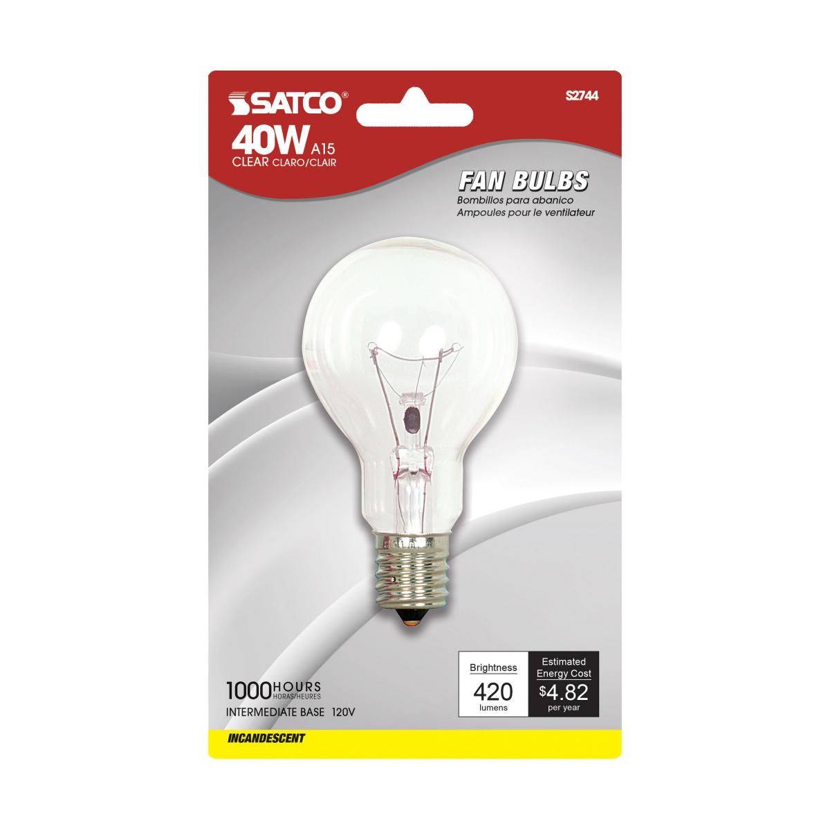 Satco S2744, A15 Incandescent, 40W, 120V, 2700K Warm White, 420 Lumens, Intermediate E17 Base, Clear Finish, 10 Packs