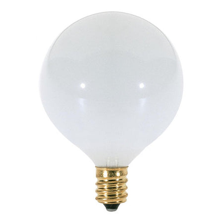 Satco S3260, G16 1/2 Incandescent, 25W, 120V, 2700K Warm White, 175 Lumens, Candelabra E12 Base, Gloss White Finish, 25 Packs