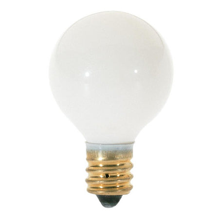 Satco S3864, G8 Incandescent, 10W, 120V, 2700K Warm White, 50 Lumens, Candelabra E12 Base, Gloss White Finish, 25 Packs