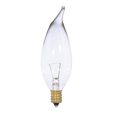 Satco S3866, CA10 Incandescent, 7W, 12V, 2700K Warm White, 65 Lumens, Candelabra E12 Base, Clear Finish, 25 Packs