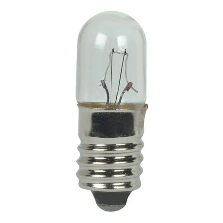 Satco S7076, T3 1/4 Miniature, 5W, 28V, 3 Lumens, Miniature Screw Base, Clear Finish, 10 Packs