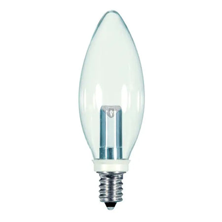 Satco S9152, BA9 1/2 LED, 1W, 120V, 2700K Warm White, 25 Lumens, Candelabra E12 Base, Clear Finish, 12 Packs